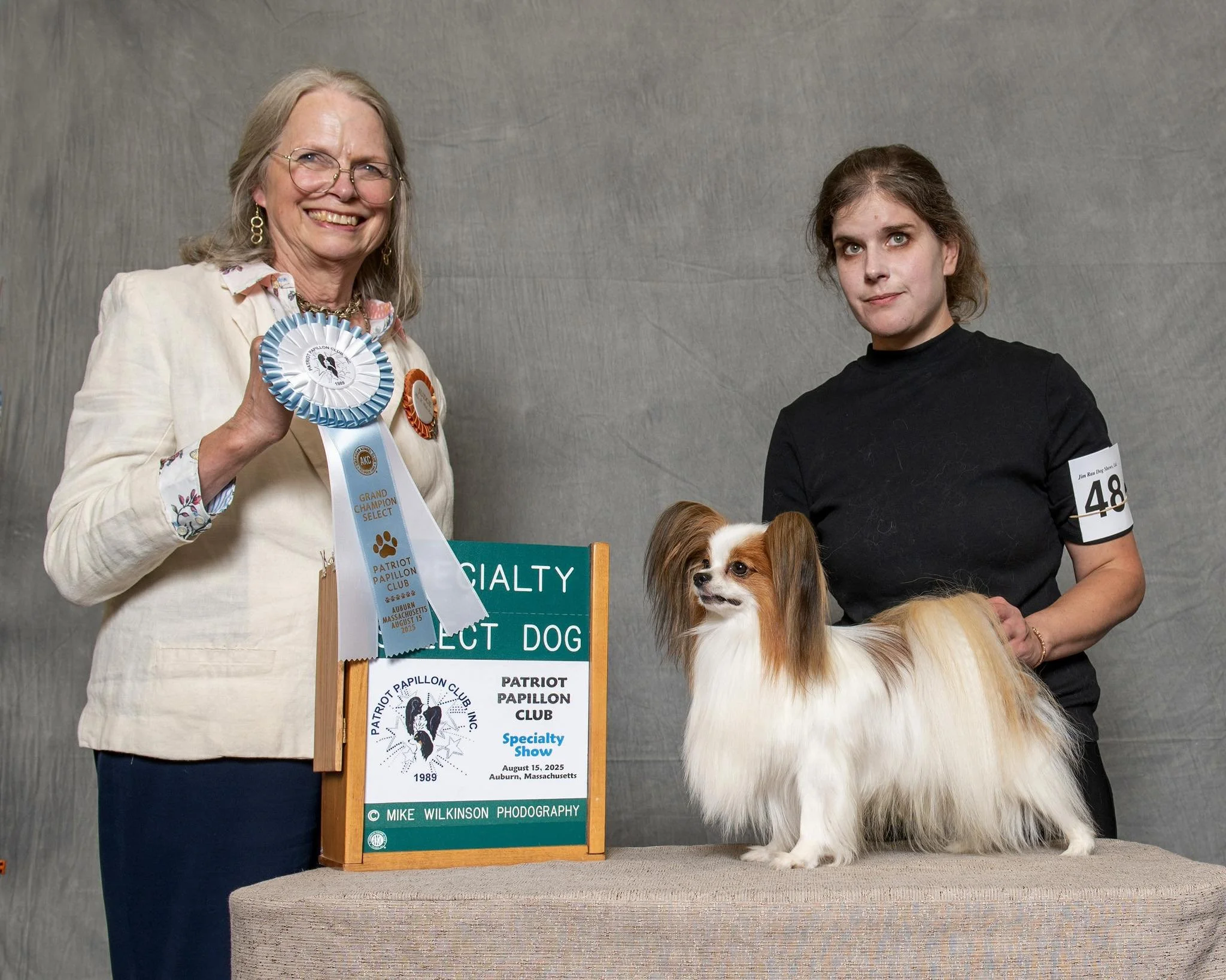 Amarillo comes from the de Bovril kennel in Poland and is a real character. He does not like nature, horses, sheep, goats, rain, or certain types of people. He is stubborn and spoiled. When he is upset about something his eyes become little slits or shoves other dogs out of the way. When he enjoys himself he becomes like an excited, dancing butterfly; he loves to train with me, for treats of course. He loves to chase and terrorize tiny stuffed animals and has a bubbling personality. He is absurdly beautiful and completed his AKC championship with 4 majors. He is Amarillo.